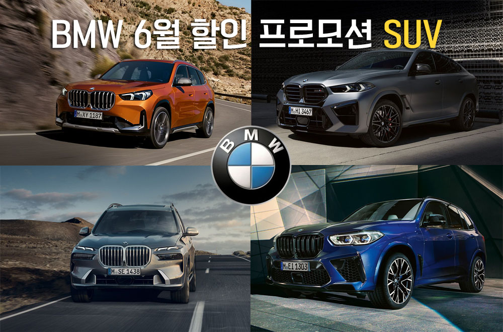 BMW 세단 및 쿠페 1시리즈부터 7시리즈까지 6월 할인 프로모션 잘 보셨나요? 이어서 BMW SUV 모델들도 6월에는 얼마나 할인받을 수 있는지 알아보겠습니다. 7월에는 개소세가 인상 예정입니다. BMW차량 구매하시려면 이번달이 최적 시기라 생각됩니다.