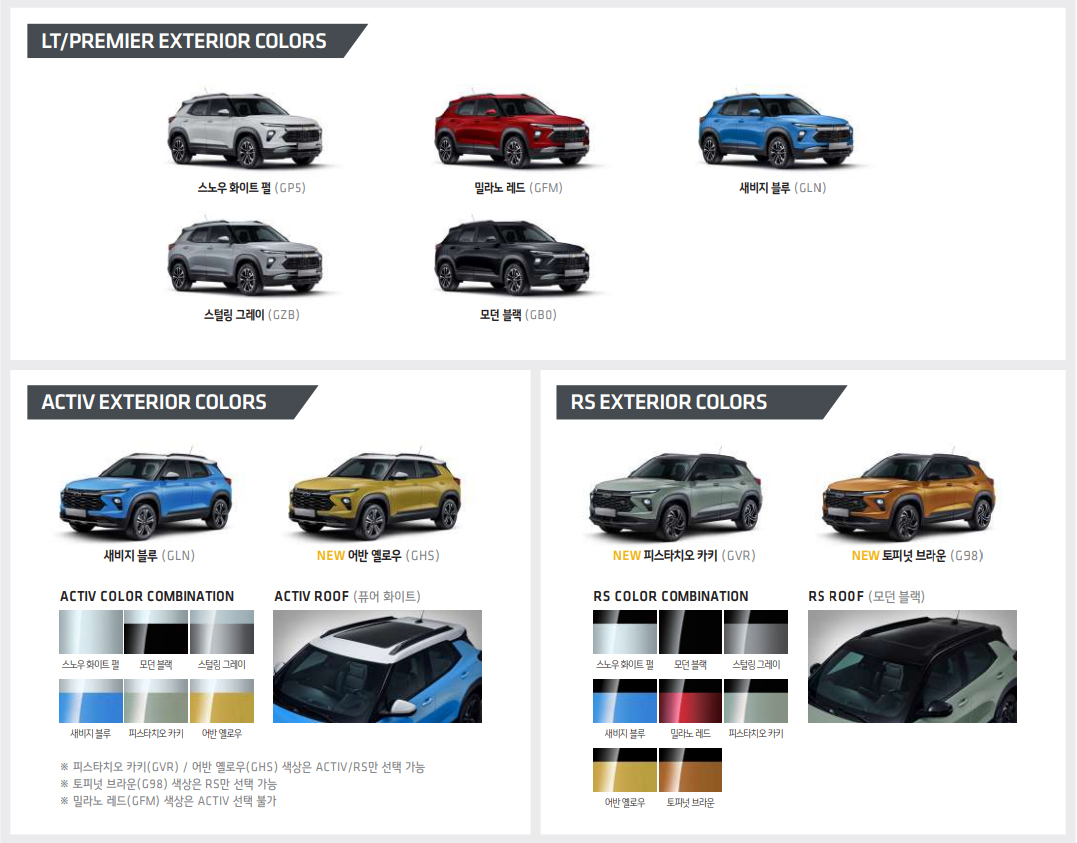 쉐보레 트레일블레이저를 출시하여 가성비(가격 대 성능비)를 앞세웠던 트랙스 크로스오버와 달리 고급화 전략으로 부분변경(페이스리프트) 모델을 출시하였습니다.